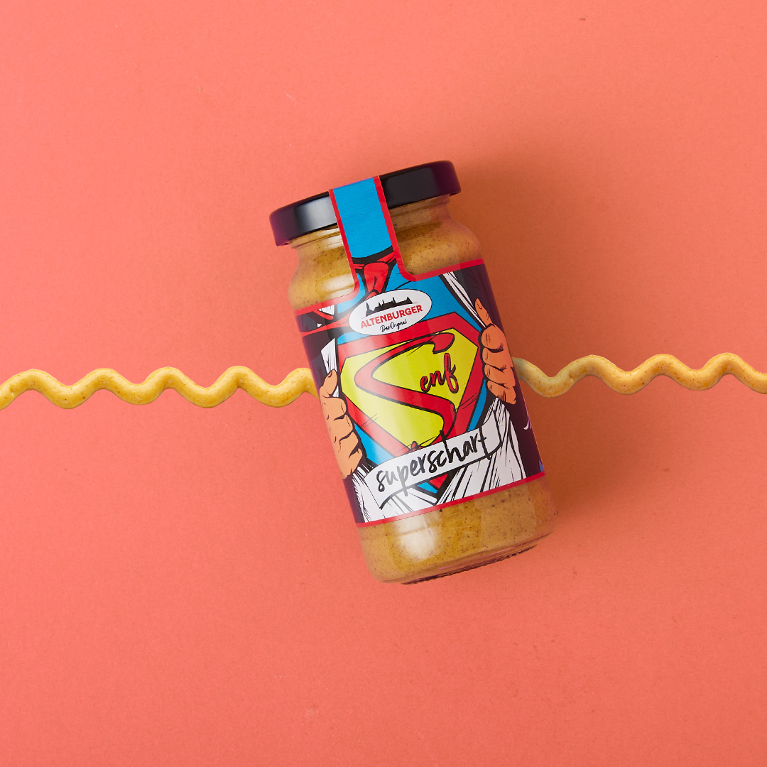 Achtung: Superscharf! Hier ist der Name Programm, denn dieser Senf von Altenburger Senf ist wirklich superscharf! Wenn du Schärfe liebst, bist du hier genau richtig. Das Zusammenspiel von Senf und Chili bündelt sich zu einer explosionsartigen Superkraft & gnadenloser Schärfe! Ausgewählte Rohstoffe und Nachhaltigkeit stehen für Altenburger Senf an erster Stelle, daher wird auf chemische Zusätze verzichtet. Seine sagenhaften Kräfte harmonieren hervorragend mit Fleischgerichten, Wurst oder zur Verfeinerung von Saucen & Dips.