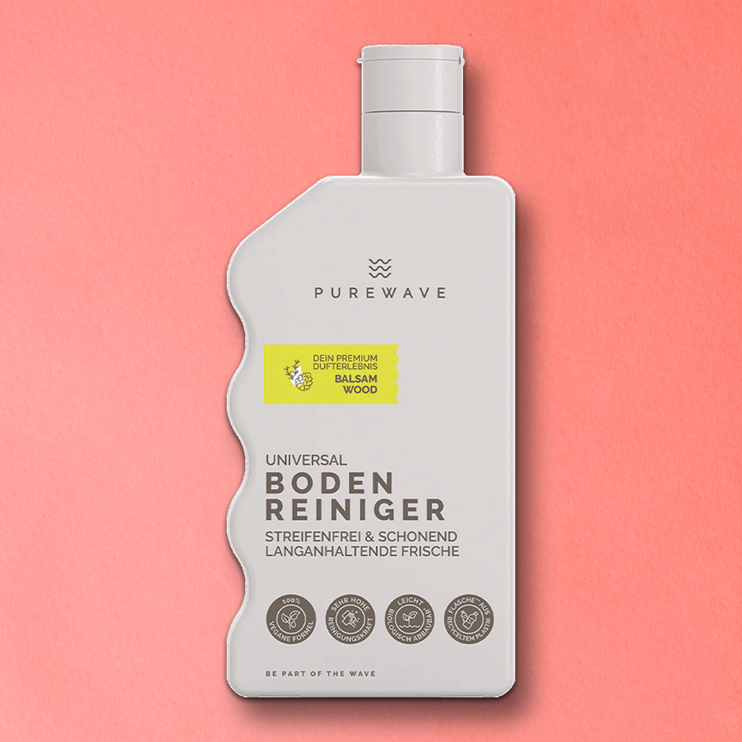 Hallo, glänzende Böden – tschüss triste Flecken! Der PUREWAVE Bodenreiniger ist dein neuer Helfer für streifenfreie Sauberkeit. Ob Schmutz, Fett oder alte Pflegerückstände – er nimmt es mit allem auf. Ganz natürlich und effektiv sorgt er für strahlende Böden und einen frischen Waldduft, der dein Zuhause einladend macht. Putzen? Fast schon ein Vergnügen!