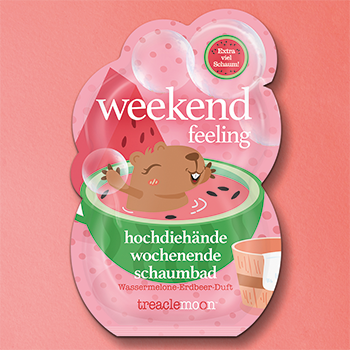 Zeit für dein Weekend Feeling! Das Pflegebad von treaclemoon schenkt dir pure Entspannung und verwöhnt deine Haut mit natürlichen Ölen. Der fruchtig-sommerliche Duft von Wassermelone und Erdbeere bringt gute Laune in die Badewanne und lässt dich abschalten, durchatmen und das Wochenende in vollen Zügen genießen.
